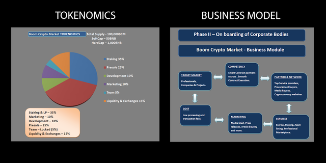 As a platform that provides a marketplace to help service providers supply services to customers on trust while also helping service buyers to get the service providers, BCM token which is the base token powering the Boom Crypto Market platform will be used for fee payments for all transactions carried out on the platform.